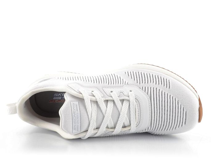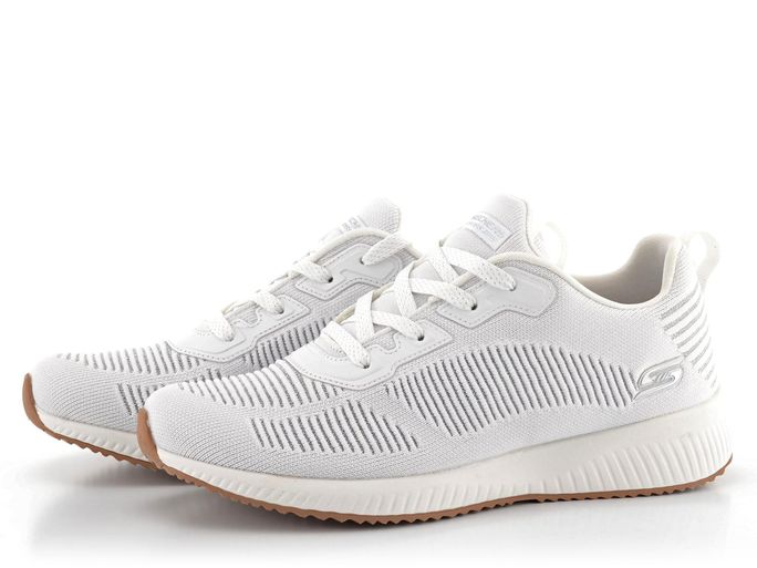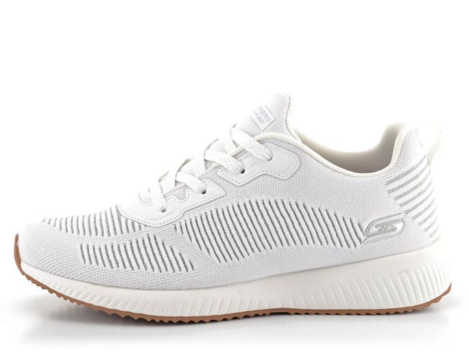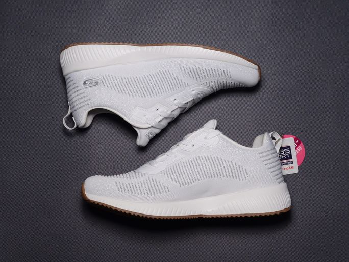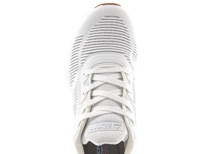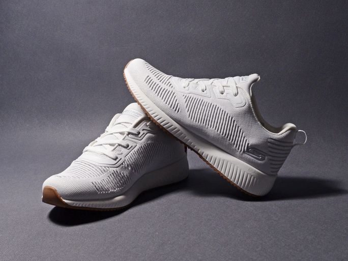 Dámské bílo-stříbrné tenisky z úpletové tkaniny s měkkou pěnovou stélkou uvnitř.
