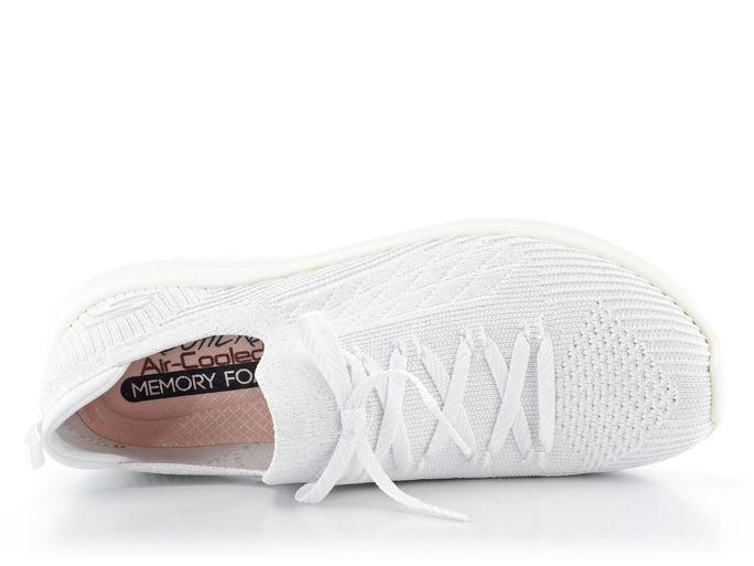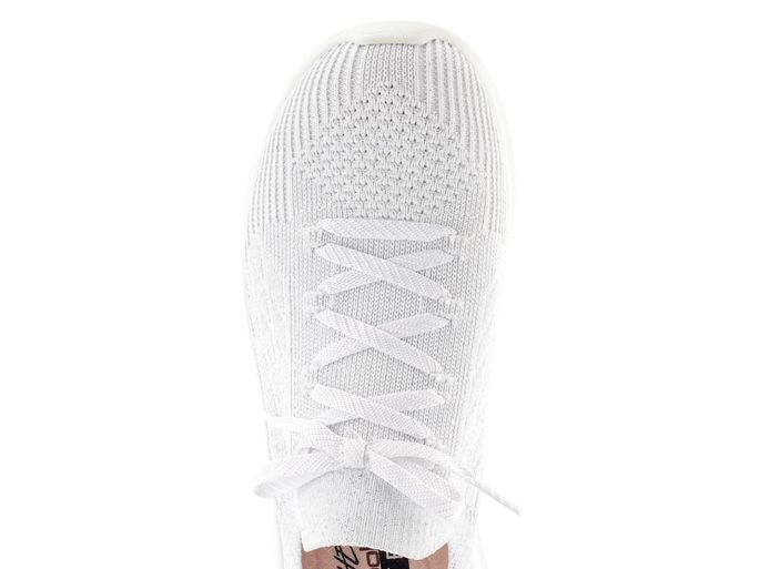 Dámské bílé tenisky protkávané stříbrnou lurexovou nití s pěnovou stélkou chlazenou vzduchem.