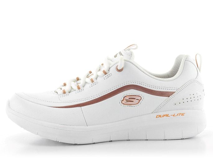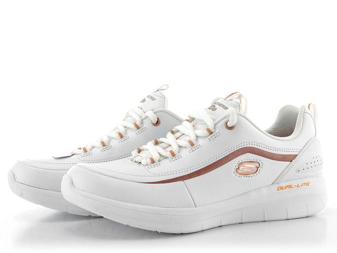 Dámské ultralehké tenisky v bílé odražené barvě se zlatými doplňky.