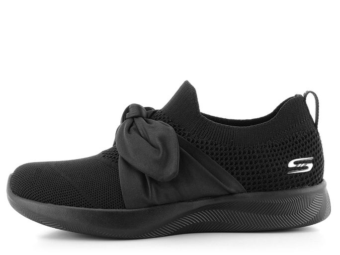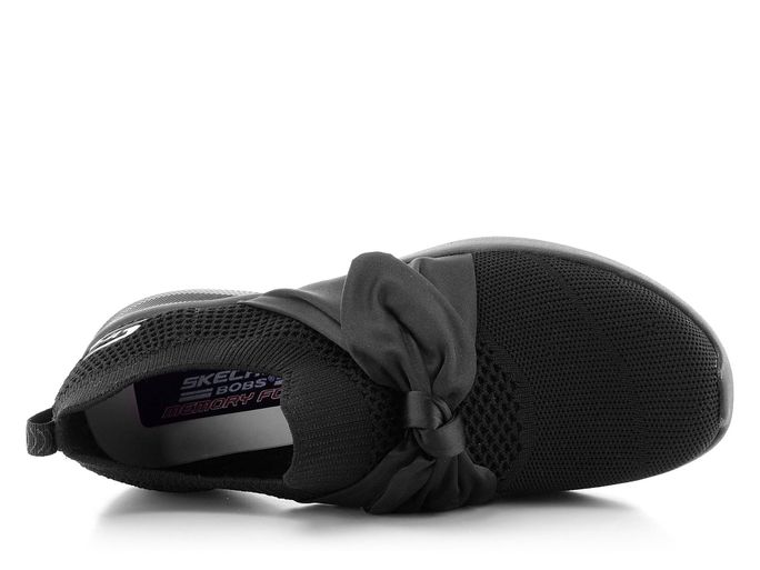 Ultralehké dámské tenisky z textilního úpletu s ponožkovým lemem a módní saténovou mašlí.