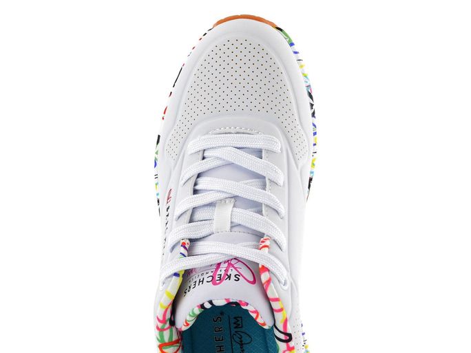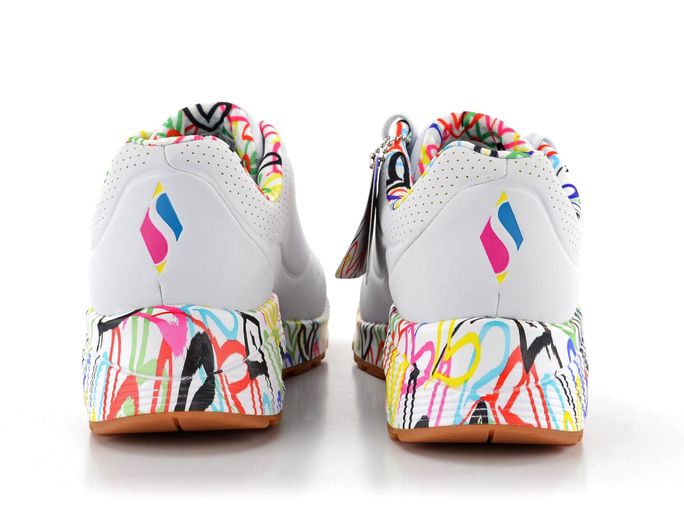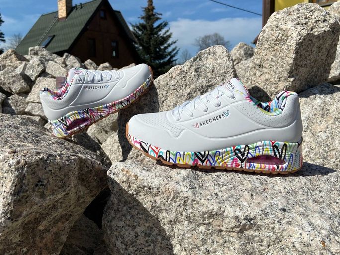 Dámské tenisky ze syntetického materiálu, s jemnou perforací na špičce a s kontrastní barevnou podešví.