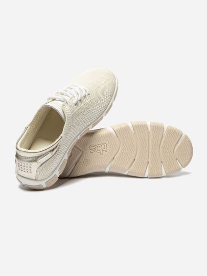 Moderní sportovní model od značky TBS nabízí kombinaci stylu a pohodlí, ideální pro teplé jarní a letní dny. Jeho prodyšný svršek z lehké textilní síťoviny v elegantní béžové barvě s metalickými zlatými akcenty zajišťuje dokonalou cirkulaci vzduchu. Perforovaný design a vyjímatelná vložka přispívají k maximálnímu pohodlí i při celodenním nošení.