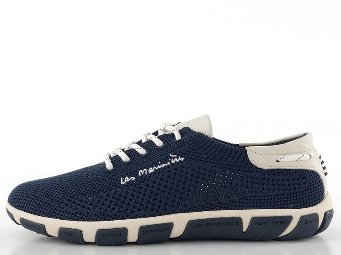 Moderní sportovní model tenisek od francouzské značky TBS přináší dokonalou kombinaci stylu a pohodlí. Tento model v námořnickém stylu se vyznačuje maximální prodyšností díky svršku z prodyšné textilní síťoviny a elegantní kombinaci tmavě modré a smetanové barvy.