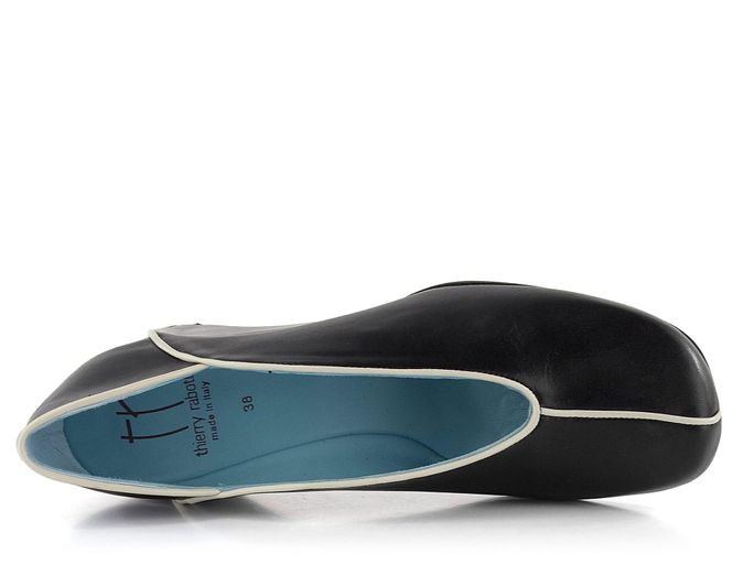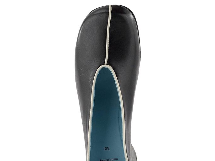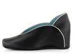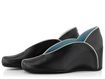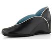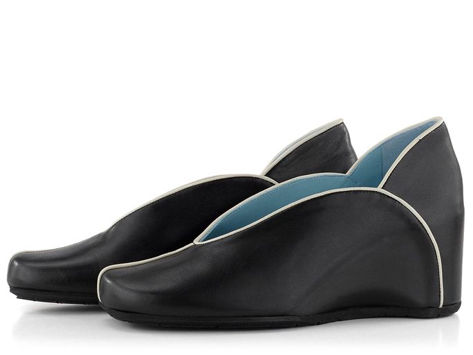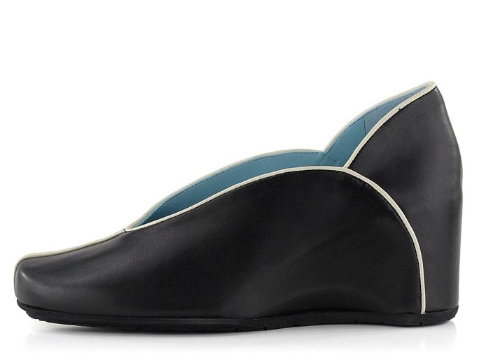Luxusní dámská obuv z černé hladké kůže lemovaná bílou paspulkou a na pohodlném skrytém klínku.