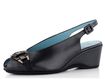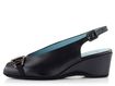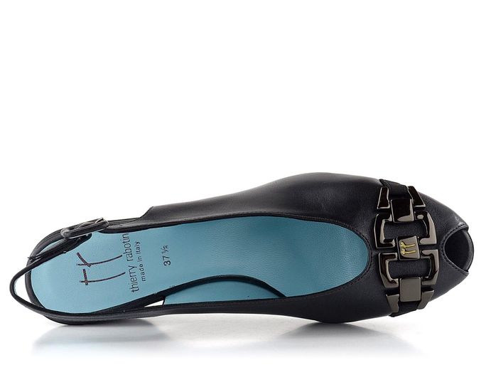 Luxusní dámské kožené sandály v černé barvě, s kovovou aplikací na špičce a na pohodlném klínku.