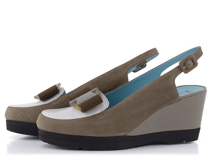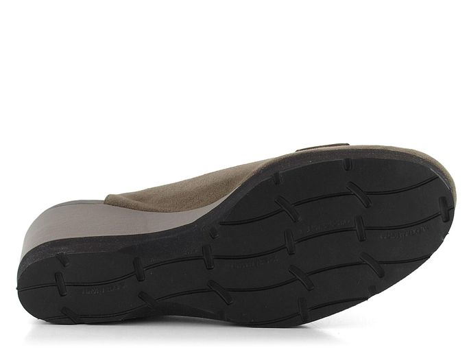 Luxusní dámské lodičky z šedohnědé semišové kůže, s volnou patou a pohodlným klínkem.