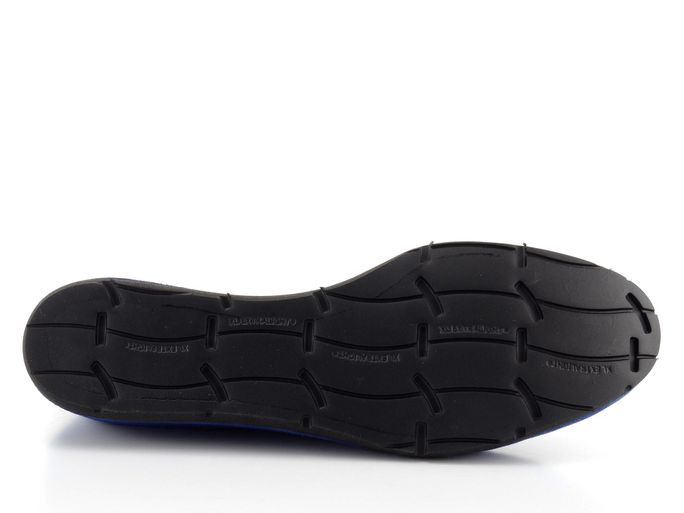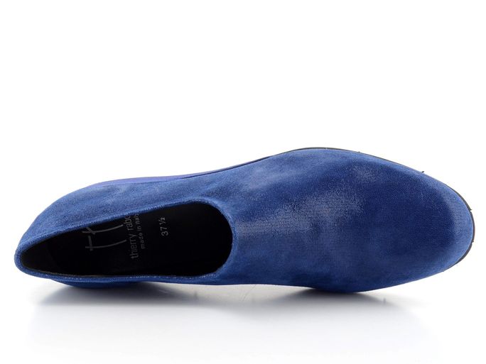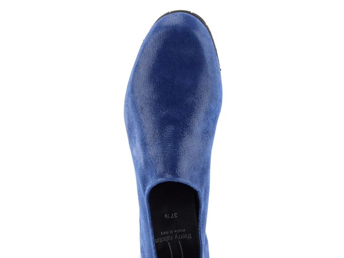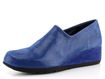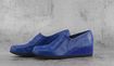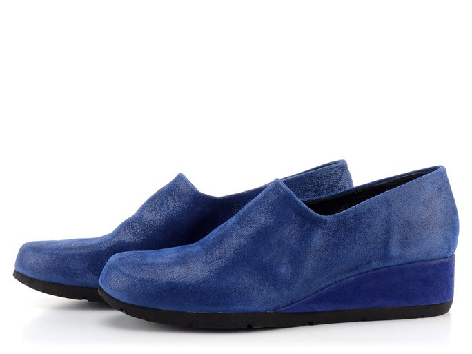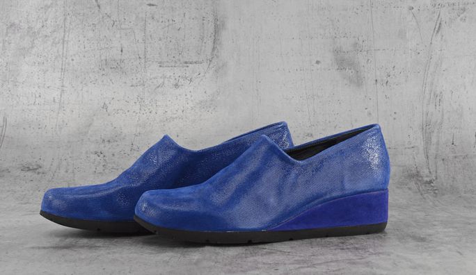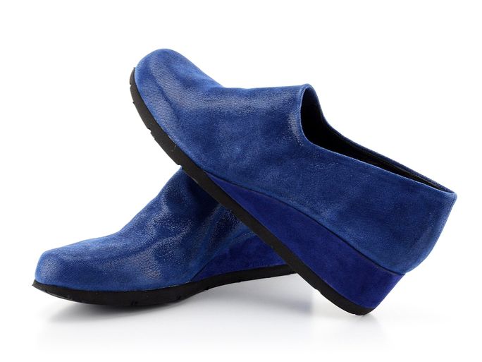 Dámské polobotky na klínku z krásné sytě modré semišové kůže s rafinovaným metalickým potiskem.