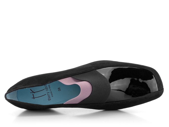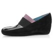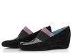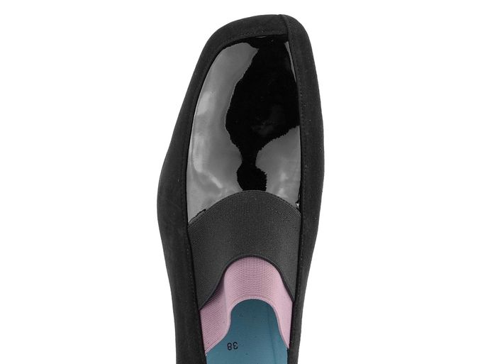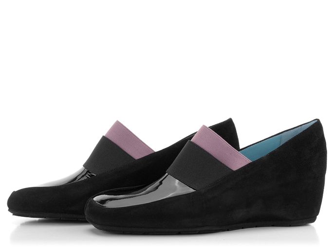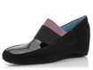Luxusní dámské polobotky z černé semišové kůže, s gumičkami na nártu a na pohodlném skrytém klínku.