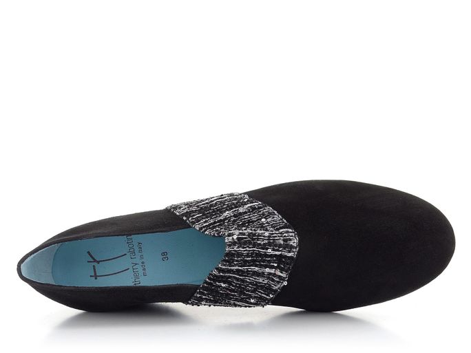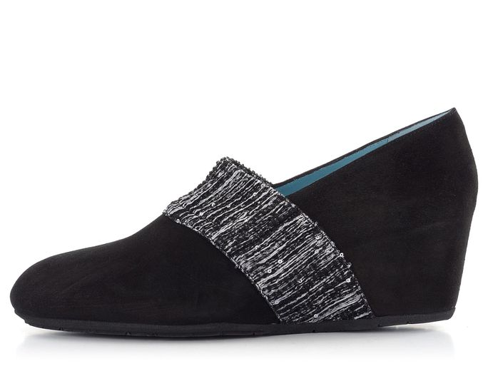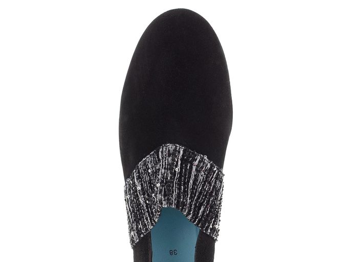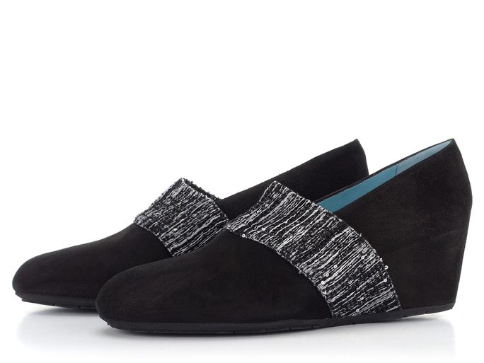 Luxusní dámské polobotky z černé semišové kůže, s pružným nártem a na pohodlném skrytém klínku.