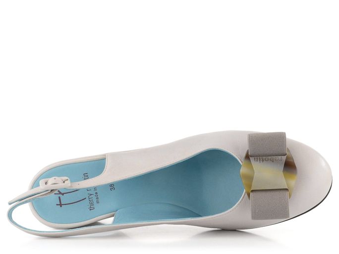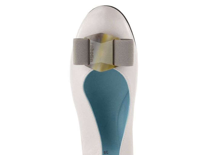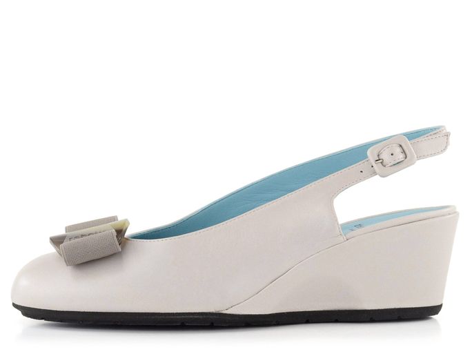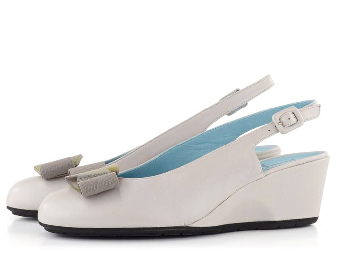 Luxusní dámské kožené lodičky ve slonovinové barvě, s ozdobnou mašličkou a na pohodlném klínku s volnou patou.