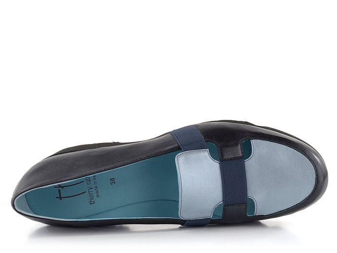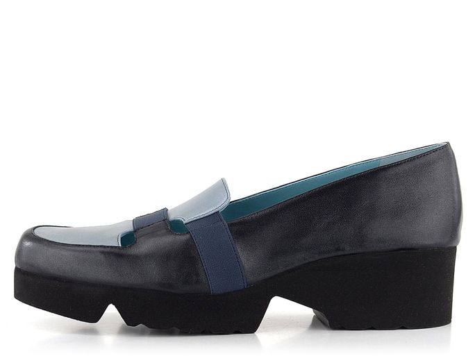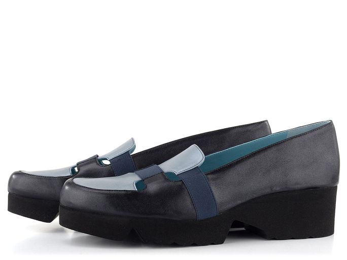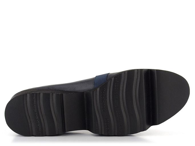 Luxusní dámské polobotky z hladké kůže v temně modré barvě, s gumičkami na nártu a na pohodlné vyšší podešvi.