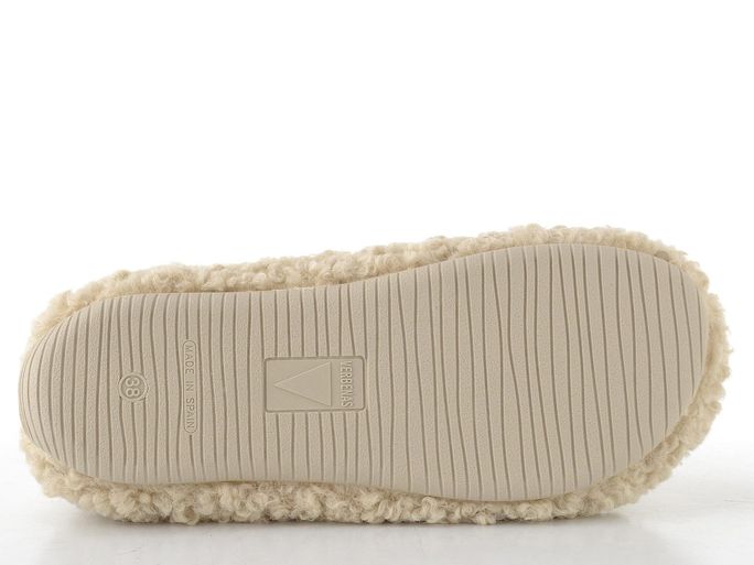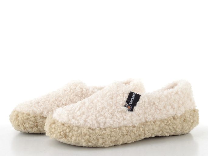 Hebké a teploučké dámské bačkůrky od španělské značky Verbenas jsou ideální volbou pro chladné podzimní a zimní dny. Jejich kulatá uzavřená špička poskytuje dostatek prostoru pro pohodlí, zatímco svršek z hebkého textilního beránka v světlé béžové (krémové) barvě s tmavším okrajem dodává elegantní vzhled. Uvnitř se nachází teplá textilní podšívka, která zajišťuje příjemný pocit na nohou. Extra měkká stélka potažená hebkou textilií zvyšuje komfort při každém kroku. Latexová podešev s jemným vzorkem je protismyková, což zaručuje bezpečnost na různých površích. Tyto bačkůrky jsou skvělou volbou pro domácí pohodu i relaxaci.