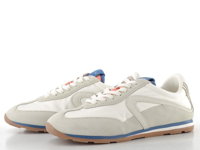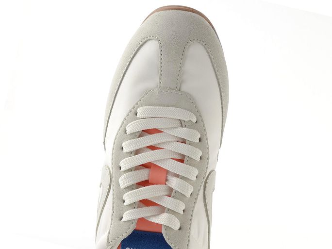 Luxusní dámské tenisky z kombinace semišové kůže a nylonové textilie, s vyjímatelnou vložkou a ohebnou latexovou podešví.