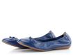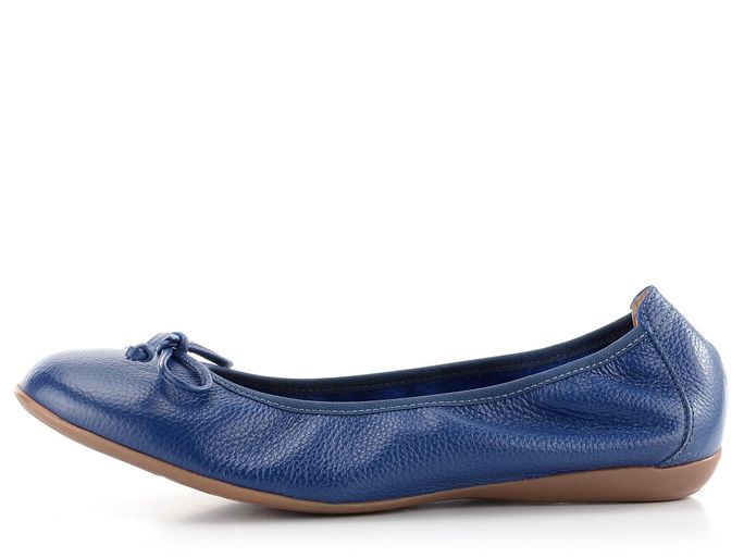 Pohodlné dámské baleríny z jemně strukturované kůže v modré barvě a s decentní mašličkou.