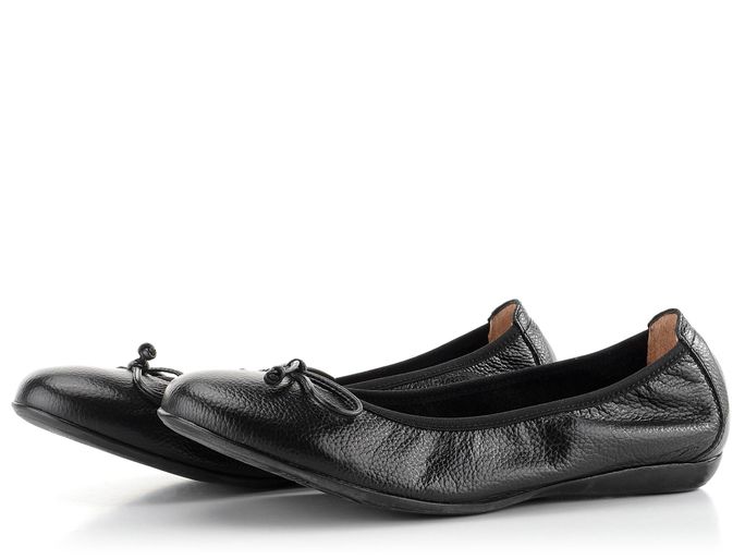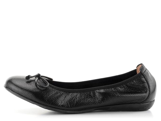 Pohodlné dámské baleríny z jemně strukturované kůže v černé barvě a s decentní mašličkou.