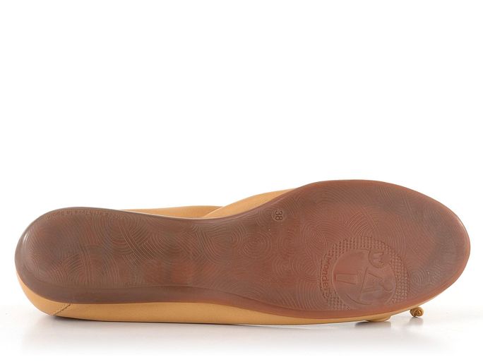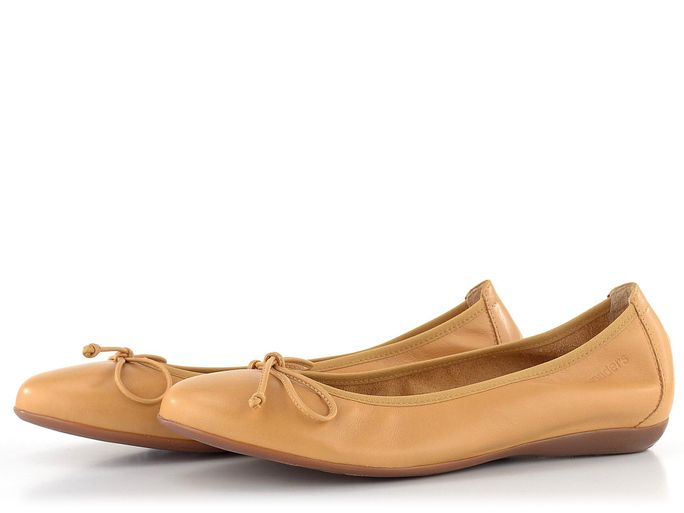 Pohodlné dámské baleríny z poddajné hladké kůže v pískově oranžové barvě a s decentní mašličkou.