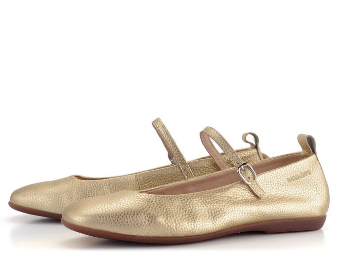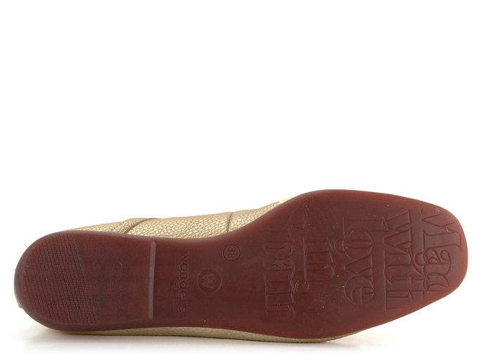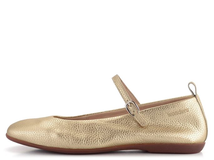 Dámské kožené baleríny ve stylovém metalickém provedení od značky Wonders zaujmou na první pohled. Tento elegantní model v platinově zlaté barvě kombinuje pohodlí s moderním designem. Baleríny mají karé špičku a nártový upínací pásek s délkovou regulací a všitou pruženkou pro maximální komfort. Vnitřek obuvi je bez podšívky, což zajišťuje přirozenou prodyšnost, a měkká stélka s výplní MemoryGel® potažená hladkou kůží poskytuje celodenní pohodlí. Stabilní a flexibilní latexová podešev je ideální pro každodenní nošení. Tento model je skvělou volbou pro jarní a letní sezónu, ať už do města, kanceláře nebo na lehkou procházku. Značka Wonders opět dokazuje, že kvalitní a stylová obuv může být také komfortní.