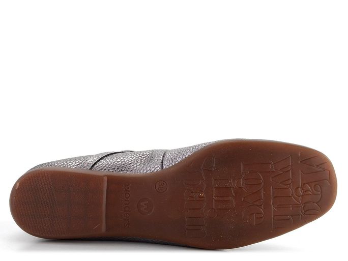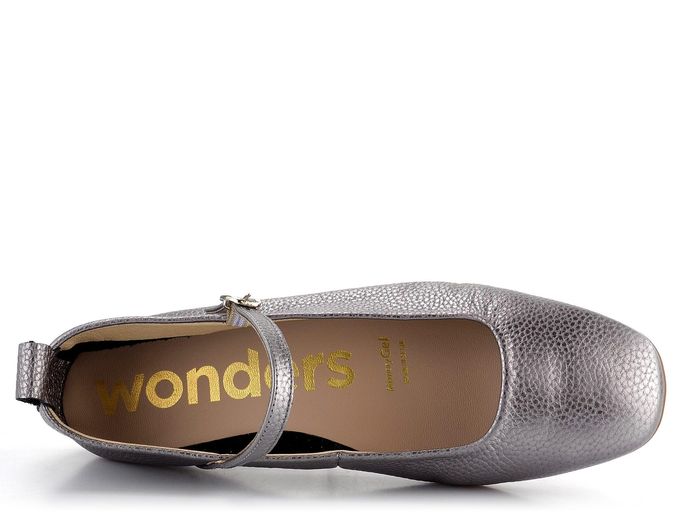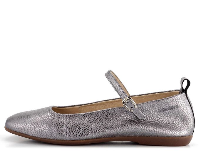 Dámské kožené baleríny značky Wonders v elegantním metalickém provedení jsou ideální volbou pro jarní a letní sezónu. Tento stylový model s karé špičkou kombinuje pohodlí a eleganci. Svršek je vyroben ze strukturované metalické kůže v kovově šedé barvě, což dodává botám jedinečný vzhled. Baleríny mají nártový upínací pásek s možností délkové regulace a všitou pruženkou pro maximální komfort.