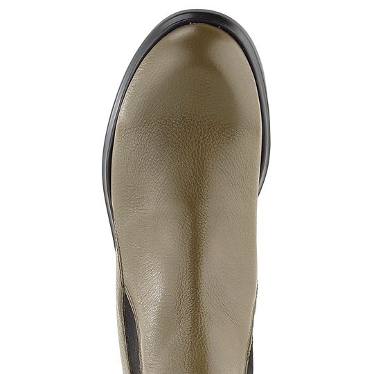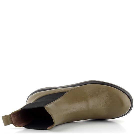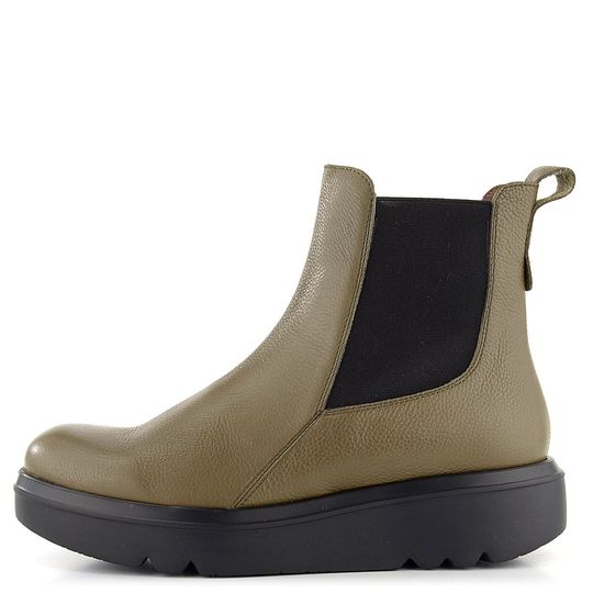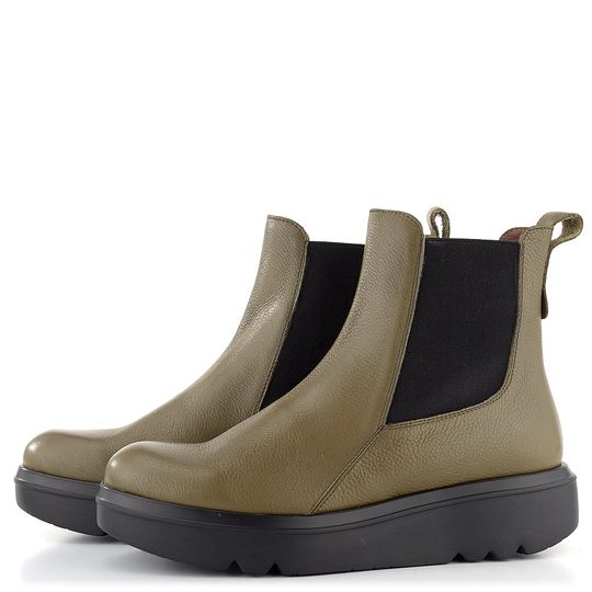 Dámský kotník z jemně strukturované usně, se širokými pružnými vsadkami po stranách a vysokou platformou.