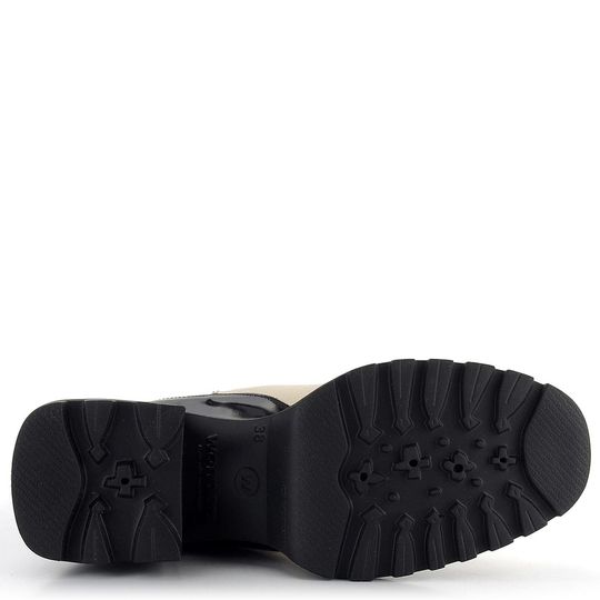 Vychutnejte si pohodlí a styl s dámskými kotníkovými botami od značky Wonders. Tyto boty z kolekce 2023/24 jsou ideální volbou pro podzimní a zimní sezónu. Robustní střih v lehkém provedení a kulatější tvar špičky zajišťují komfort a moderní vzhled. Svršek je vyroben z kvalitní kůže s jemnou strukturou a leštěnou úpravou na bočních a zadních částech. Kombinace krémové a černé barvy dodává botám elegantní vzhled. Široké pruženky po obou stranách usnadní obutí a podpoří pohodlnou chůzi. Podšívka z hladké kůže a vyměkčená stélka s výplní MemoryGel® zaručují maximální komfort. Vysoká, robustní a velmi lehká podešev s výškou podpatku 7,5 cm poskytuje stabilitu a styl. Výška kotníku je 17,5 cm (bez podpatku). Tyto boty jsou skvělou volbou pro každodenní nošení ve městě, do kanceláře i na lehkou procházku venku.