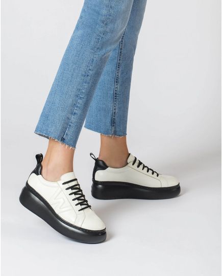 Designové kožené dámské polobotky v bílo-černém provedení, na vysoké platformě.
