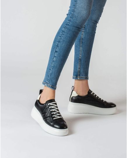 Designové kožené dámské polobotky v černo-bílém provedení, na vysoké platformě.