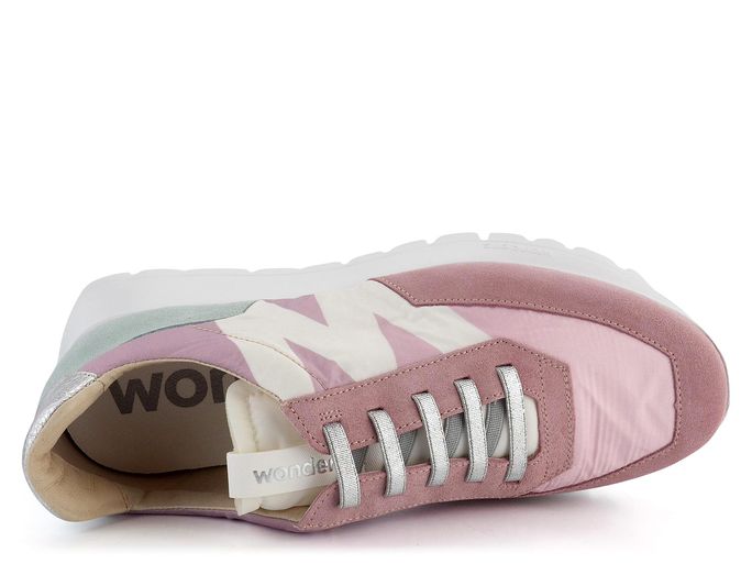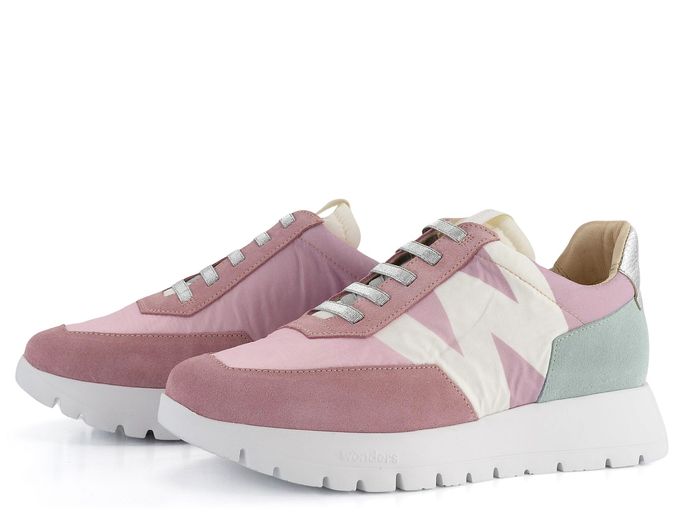 Stylové dámské polobotky/tenisky na platformě od španělské značky Wonders přinášejí kombinaci elegance a pohodlí. Boty mají kulatý tvar špičky a svršek z metalické a semišové kůže v kombinaci s textilií, což dodává botám jedinečný vzhled. Barevná kombinace starorůžové, světle růžové, bílé, stříbrné a mátově zelené barvy zajišťuje, že budete vždy vynikat.