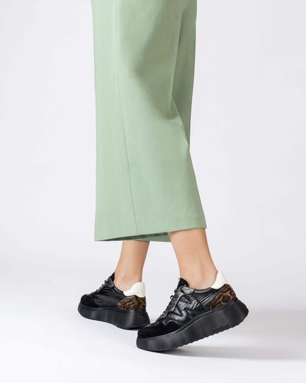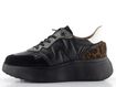Designové dámské tenisky s pružným šněrováním a vysokou platformou, s černým základem a módními kontrastními doplňky.