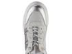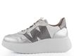 Designové dámské tenisky s pružným šněrováním a vysokou platformou, v metalickém stříbrno-šedém provedení.