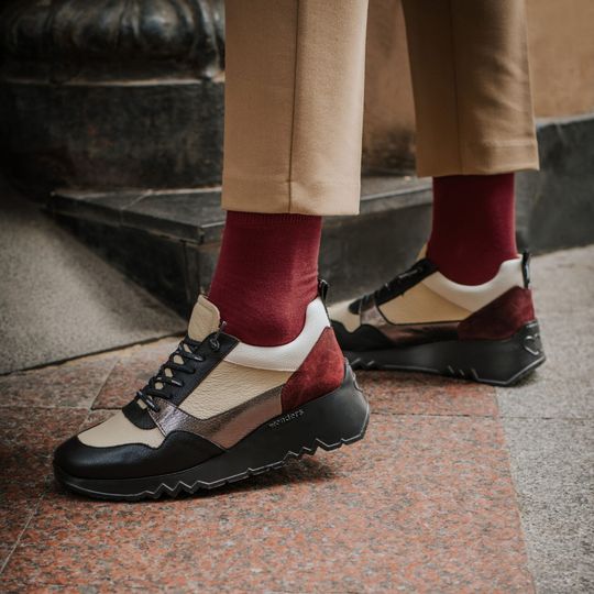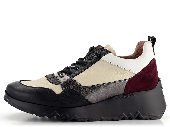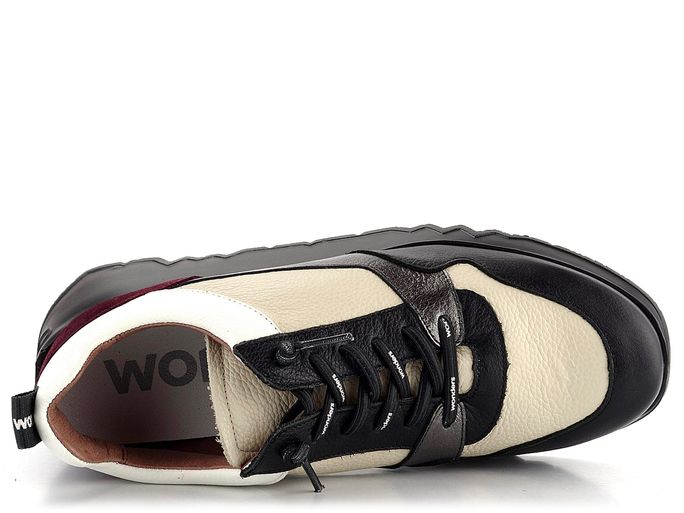 Dámské stylové polobotky/tenisky na platformě s klínkem od značky Wonders jsou ideální volbou pro podzimní a zimní sezónu. Tyto boty vynikají svým pěkným tvarem špičky a strukturovanou kůží ve stínových odstínech béžové, smetanové, bordó, metalické šedé a černé. Díky pružnému šněrování je jejich obutí snadné a rychlé. Uvnitř najdete převážně koženou podšívku s textilní špičkou a extra vyměkčeným jazykem a patním lemem, což zajišťuje maximální komfort. Boty jsou vybaveny měkkou vyjímatelnou stélkou ze syntetiky s výplní MemoryGel® pro ještě vyšší pohodlí. Lehká vyšší podešev s klínkem a hrubším vzorkem je na patě módně zkosená, což dodává botám moderní vzhled. Výrobní způsob je lepený, což garantuje dlouhou životnost a kvalitu. Tyto tenisky jsou skvělou volbou pro každodenní nošení ve městě i na lehké procházky.