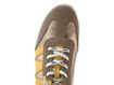 Designové dámské tenisky s pružným šněrováním a vyšší platformou, v béžovo-metalické kombinaci se žlutými prvky.