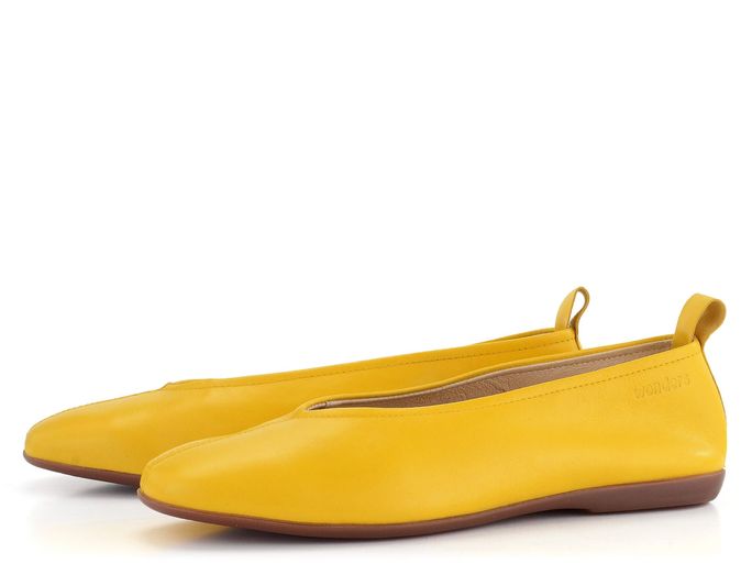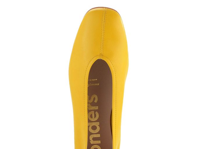 Dámské kožené baleríny od značky Wonders představují ideální volbu pro jarní a letní sezónu. Tento elegantní model v sytě žluté barvě (maiz = kukuřice) se vyznačuje uzavřenějším střihem do karé špičky a ozdobným prošitím na špičce. Obuv z hladké kůže je nejen stylová, ale i velmi pohodlná díky měkké stélce s výplní MemoryGel®, která je potažená hladkou kůží. Vnitřek boty je bez podšívky, což zajišťuje maximální komfort. Stabilní a vysoce flexibilní latexová podešev poskytuje potřebnou oporu při každém kroku. Výška podpatku je 1,2 cm, což dodává balerínám elegantní vzhled bez ztráty pohodlí. Tento model je vyroben lepeným způsobem, což zaručuje jeho trvanlivost a kvalitu. Baleríny jsou ideální pro každodenní nošení ve městě, do kanceláře nebo na lehkou procházku venku.