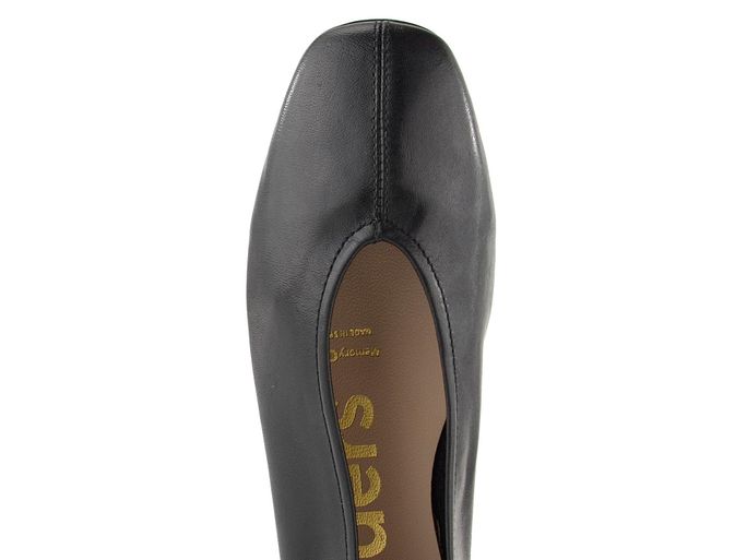 Pohodlné dámské baleríny z hladké a poddajné kůže v černé barvě a s prošíváním na špičce.