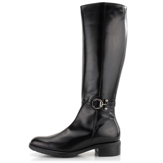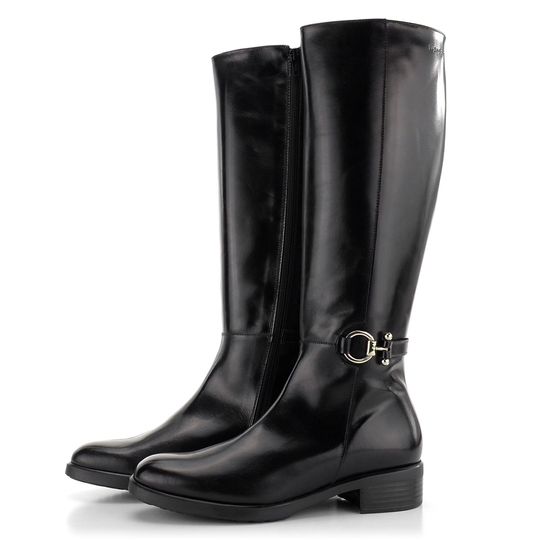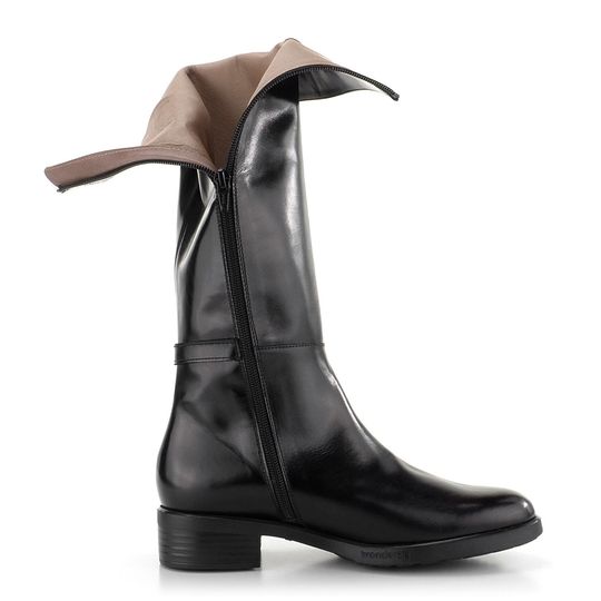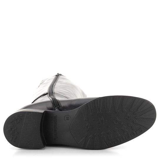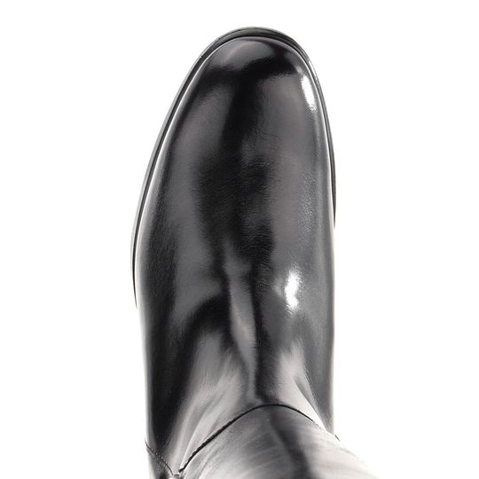 Dámské hladké kozačky z černé leštěné kůže s vnitřní koženou podšívkou.