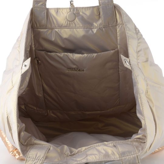 Originální a ultra lehká dámská kabelka od značky Wonders je ideálním doplňkem pro každou příležitost. Její prostorný střih pojme formát A4, což oceníte při každodenním používání. Vyrobena z šusťákoviny, kabelka vyniká svou lehkostí a praktičností. Dostupná v metalických odstínech jako stříbrná, růžová zlatá a béžová, dodá vašemu outfitu šmrnc.