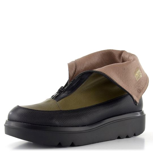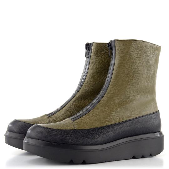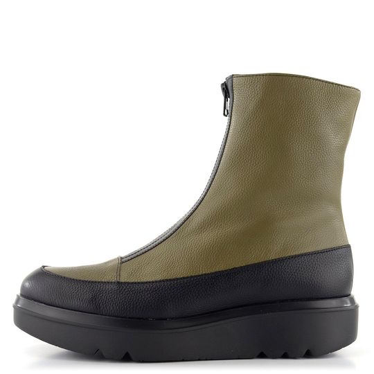 Robustnější dámský kožený kotník na vysoké odlehčené platformě, se zapínáním na přední zip.