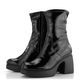 Dámský zateplený kotník z lakované syntetiky v černé barvě, na platformě s vysokým, širokým podpatkem.