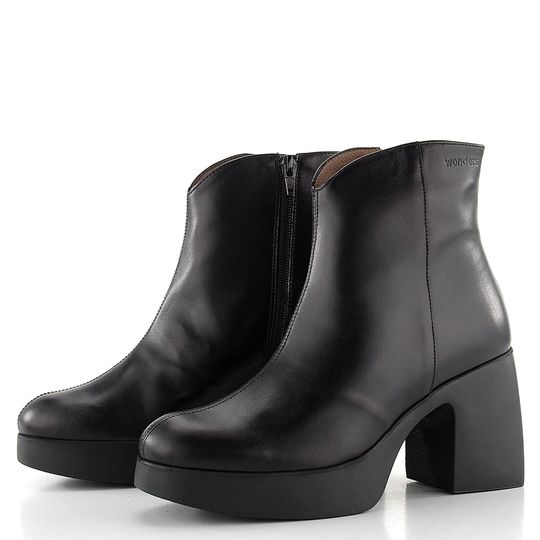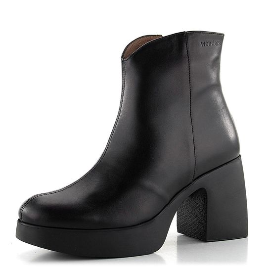 Hledáte stylovou podzimní obuv, která dokonale doplní Váš outfit? Vyzkoušejte designové kotníkové boty na podpatku od značky Wonders. Tyto boty se pyšní elegantním střihem s kulatou špičkou a jsou vyrobeny z hladké kůže v klasické černé barvě. Pro snadné obutí je na vnitřní straně zip. Uvnitř najdete hladkou koženou podšívku a špičku podšitou textilií, což zaručuje maximální pohodlí. Kotník není zateplený, což je ideální pro mírnější podzimní dny. Komfort zvyšuje měkká kožená stélka s výplní MemoryGel®. Stabilní a odlehčená platforma s výškou podpatku 8,5 cm dodává botám nejen styl, ale i pohodlí. Výška kotníku je 14 cm (bez podpatku). Boty jsou vyráběny lepeným způsobem, což zajišťuje jejich trvanlivost. Tyto kotníkové boty jsou ideální volbou pro každodenní nošení i formální příležitosti.