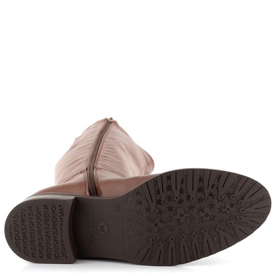 Jednoduchá a čistá elegance se snoubí s výjimečným komfortem v těchto kozačkách od značky Wonders. Vyrobené z hladké kůže v čokoládově hnědém odstínu, tyto boty zaujmou svým pěkným tvarem špičky a středně vysokým podpatkem o výšce 3,5 cm. Uvnitř najdete převážně syntetickou podšívku, zatímco špička je podšita textilií. Kožené vnitřní lemy a měkká stélka s výplní MemoryGel® zajišťují maximální pohodlí. Praktický postranní zip v celé délce a skrytě všitá pružná vsadka pro optimální fitting dodávají botám funkčnost. Horní obvod kozačky je 38 cm pro velikost 38, což odpovídá velikosti lýtka M. Vyšší latexová podešev se širokým podpatkem a výška kozaček 39 cm (bez podpatku) z nich činí ideální volbu pro podzimní a zimní sezónu. Dopřejte si kvalitu a styl s kozačkami od značky Wonders.