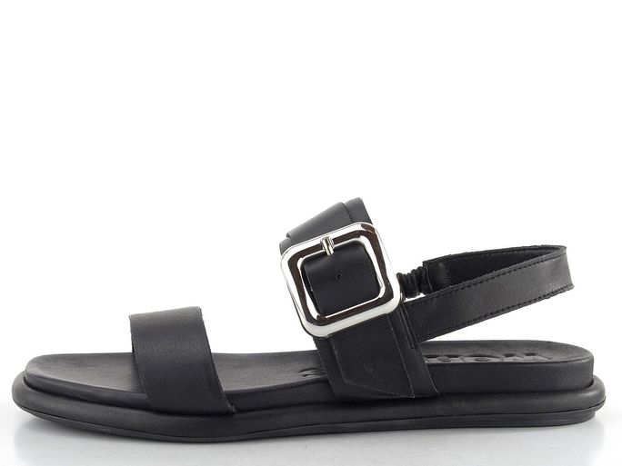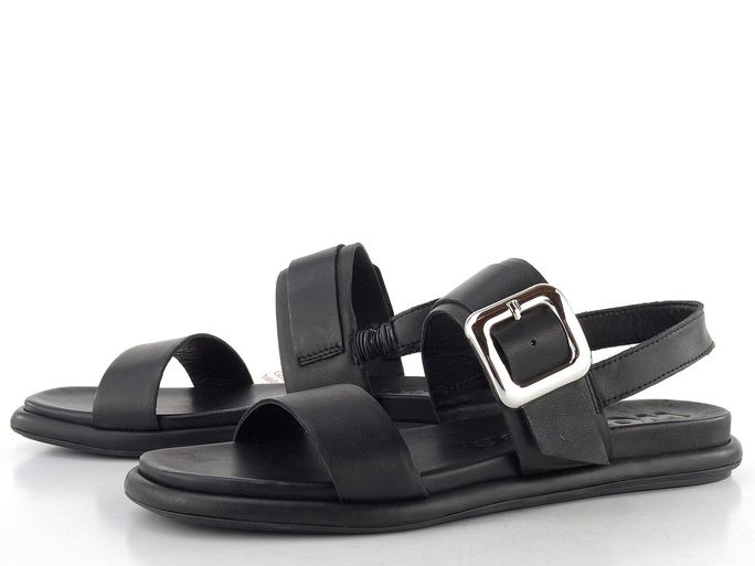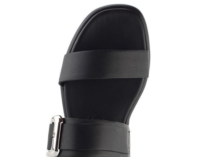 Dámské celokožené sandály se širokými pásky na rovné latexové podešvi bez podpatku.