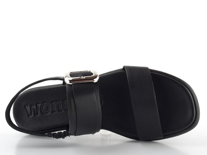 Dámské kožené sandály značky Wonders jsou ideální volbou pro ty, kdo hledají stylovou a pohodlnou obuv na jaro a léto. Tyto sandály v elegantní černé barvě se vyznačují prostornou hranatější špičkou a pásky z pevné hladké kůže. Nártový pásek je vybaven dekorativní sponou s možností délkové regulace, zatímco pružný patní pásek usnadňuje obouvání. Měkká kožená stélka zajišťuje komfort při každém kroku a flexibilní latexová podešev přidává na pohodlí. S podpatkem o výšce 2,5 cm jsou tyto sandály skvělou volbou pro každodenní nošení i formální příležitosti, přičemž respektují životní prostředí díky kvalitnímu a trvanlivému zpracování.