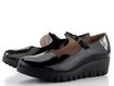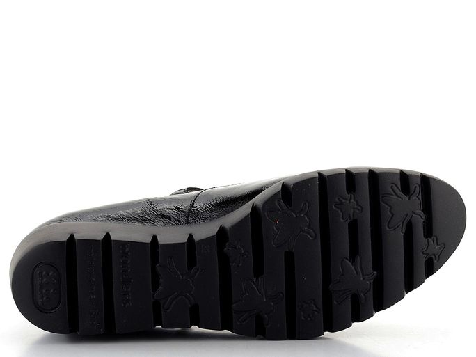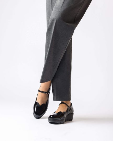 Dámské lodičky na klínku značky Wonders jsou ideální volbou pro podzimní a zimní sezónu. Tyto elegantní boty s kulatou špičkou a nártovým páskem zaujmou svým svrškem z lakované kůže v černé barvě. Tvarované prostřihy na nártu dodávají lodičkám na eleganci, zatímco kožená podšívka a měkká stélka s gelovou výplní MemoryGel® zajišťují maximální komfort. Upínací pásek na pružence s možností délkové regulace přináší pohodlí při chůzi. Klínová podešev s výrazným hrubým profilem je lehká a stabilní. Lepený výrobní způsob zaručuje dlouhou životnost. Při nošení obuvi se může na namáhaných místech objevit přirozené zvrásnění materiálu, což je typickou vlastností kůže. Výška podpatku je 4,5 cm.