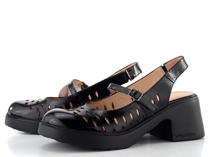 Dámské lakované lodičky od španělské značky Wonders představují dokonalou volbu pro jarní a letní dny. Elegantní černý svršek z jemně strukturované lakované kůže zajišťuje nejen styl, ale i pohodlí. S kulatou špičkou a měkkou stélkou s výplní MemoryGel® se můžete těšit na komfort při každém kroku.