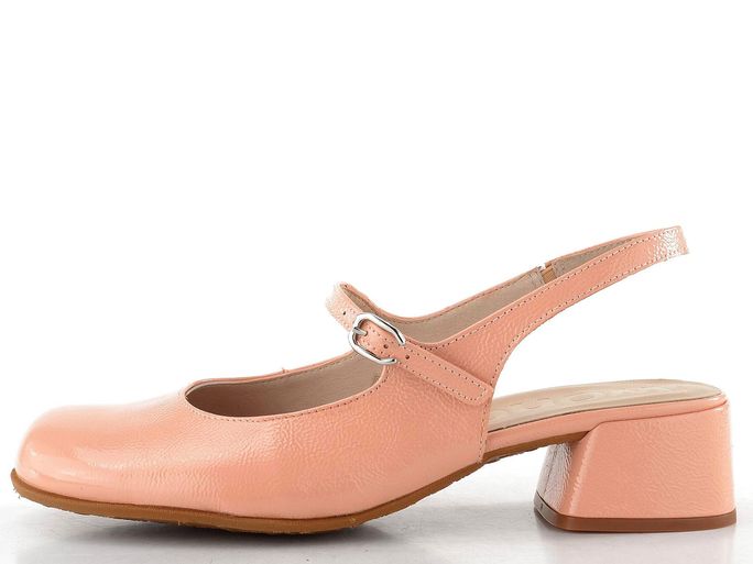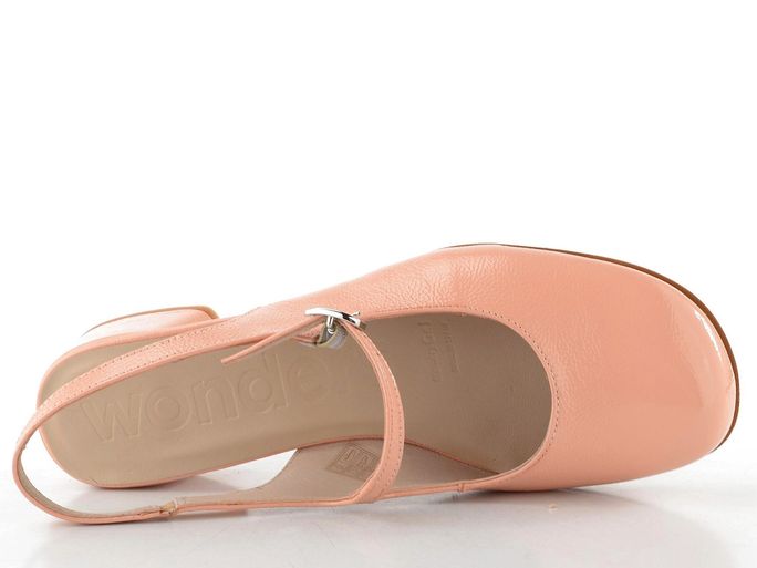 Osobité dámské lodičky v krásné meruňkové barvě od španělské značky Wonders jsou ideální volbou pro jarní a letní dny. S prostornou hranatější špičkou a svrškem z jemně mačkané lakované kůže se stanou elegantním doplňkem vašeho šatníku. Praktický nártový pásek s délkovou regulací a pruženkou zajišťuje pohodlné nošení, zatímco patní pásek s pruženkou dodává stabilitu. Uvnitř najdete poddajnou koženou podšívku a měkkou stélku s výplní MemoryGel®, která se přizpůsobí vaší noze. Ohebná syntetická podešev se širokým potaženým podpatkem (výška 4 cm) a jemným vzorkem zaručuje komfort při každém kroku. Tyto lodičky jsou nejen stylové, ale i praktické pro každodenní nošení.
