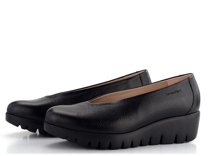 Dámské lodičky na klínu značky Wonders představují ideální volbu pro ty, kdo hledají spojení elegance a komfortu. Tyto boty z kolekce jaro/léto 2024 jsou vyrobené z kvalitní strukturované kůže v černé barvě, která dodává sofistikovaný vzhled. Kulatá špička a tvarovaný okraj na nártu přidávají na eleganci, zatímco kožená podšívka zajišťuje maximální pohodlí. Vnitřní stélka s gelovou výplní MemoryGel® a hladkým koženým potahem poskytuje měkký došlap. Lehká klínová podešev s výrazným hrubým profilem a výškou podpatku 4,5 cm nabízí stabilitu a styl. Tyto lodičky jsou ideální pro městské prostředí, kancelář nebo formální příležitosti, přičemž stále zůstávají pohodlné. Zvolte kvalitu a eleganci s lodičkami značky Wonders.
