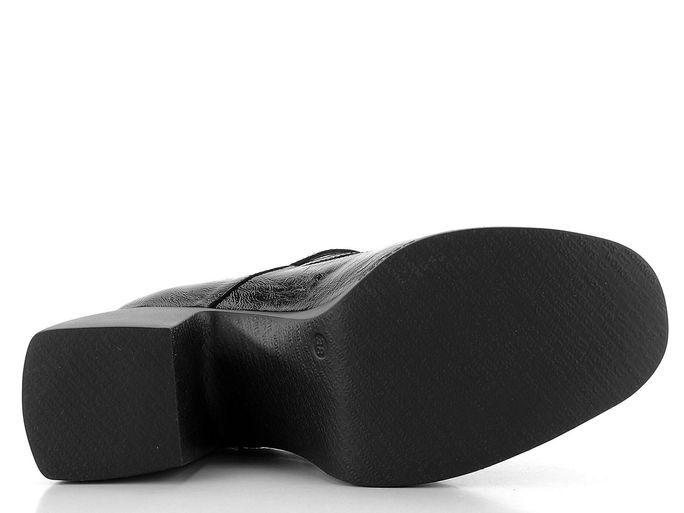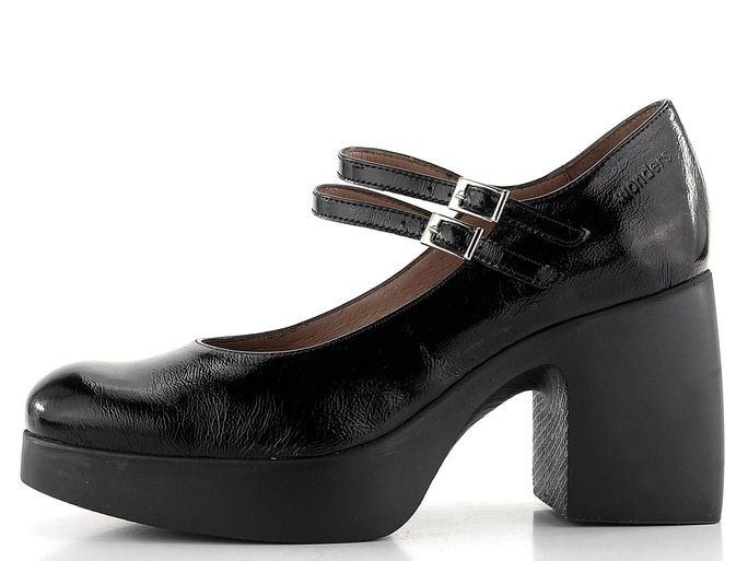 Elegantní dámské lodičky na platformě od španělské značky Wonders jsou ideální volbou pro podzimní a zimní sezónu. Tyto lodičky vynikají prostornou kulatou špičkou a svrškem z lakované krešlakové kůže, která přirozeně zvrásní v namáhaných místech. Dva nártové pásky s délkovou regulací zajišťují pohodlné nošení a perfektní přizpůsobení. Uvnitř najdete poddajnou koženou podšívku a měkkou koženou stélku s výplní MemoryGel®, která poskytuje maximální komfort. Robustní podpatek o výšce 8,5 cm a módní platforma dodávají botám moderní vzhled a stabilitu. Lepený výrobní způsob zaručuje dlouhou životnost. Tyto lodičky v černé barvě jsou skvělou volbou pro každou ženu, která hledá kombinaci stylu a pohodlí.