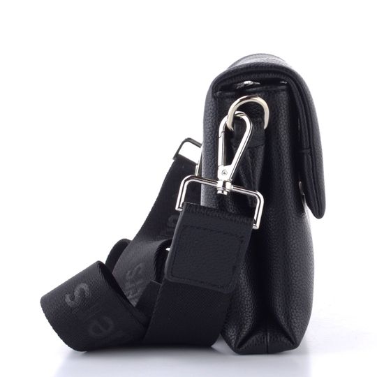 Dámská crossbody kabelka malé velikosti v černé barvě se zavíráním na klopu.