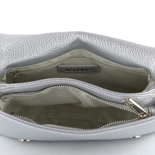 Dámská crossbody kabelka od značky Wonders představuje ideální doplněk pro moderní ženu, která hledá styl a praktičnost. Vyniká svou stříbrnou metalickou barvou, která dodává šmrnc každému outfitu. Kompaktní rozměry (šířka 22 cm, výška 15 cm, hloubka dna 4 cm) zajišťují, že kabelka je lehká a snadno přenosná, ale přesto dostatečně prostorná pro všechny nezbytnosti. Vyrobena je z poddajné strukturované syntetiky, která zaručuje dlouhou životnost. Praktický crossbody popruh s nastavitelnou délkou zajišťuje pohodlné nošení. Vnitřní uspořádání nabízí dvě oddělené kapsy, včetně jedné se zipem na cennosti. Kabelka je doplněna o masivní logo značky a elegantní kovové prvky ve stříbrné barvě.