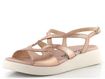 Dámské sandály z metalické kůže v růžové barvě na lehké podešvi s malým klínkem.