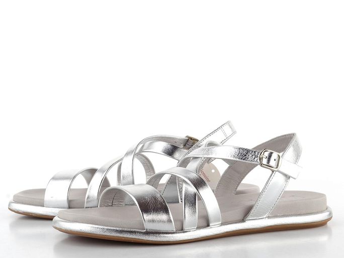 Dámské celokožené sandály v metalickém provedení na komfortní nízké podešvi.